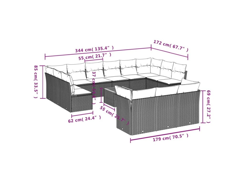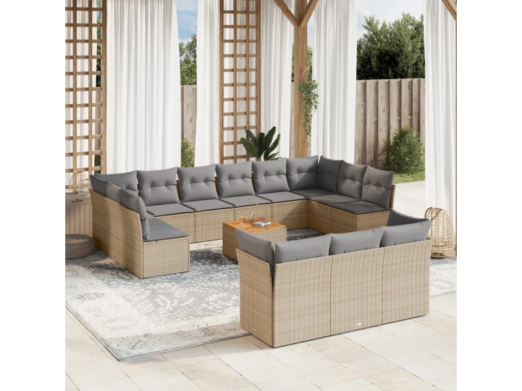14dílná zahradní sedací souprava s poduškami béžová polyratan 3223924