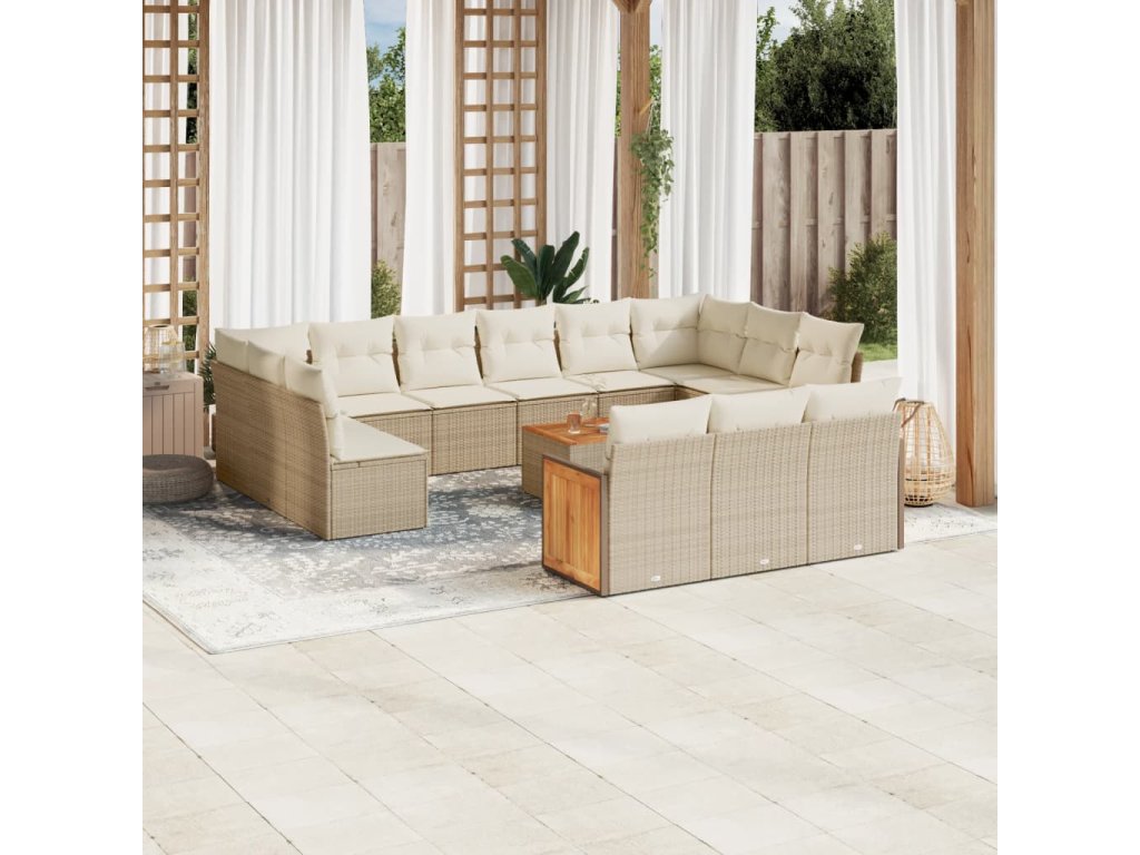 14dílná zahradní sedací souprava s poduškami béžová polyratan 3228144