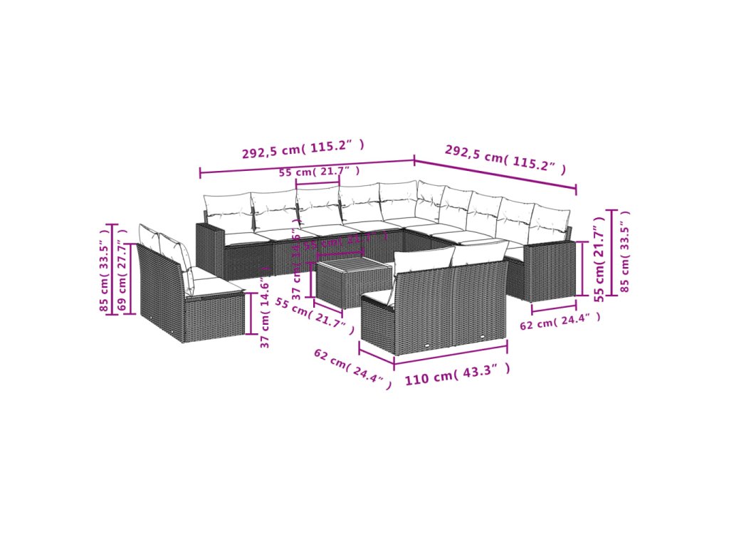 14dílná zahradní sedací souprava s poduškami černá polyratan 3224375
