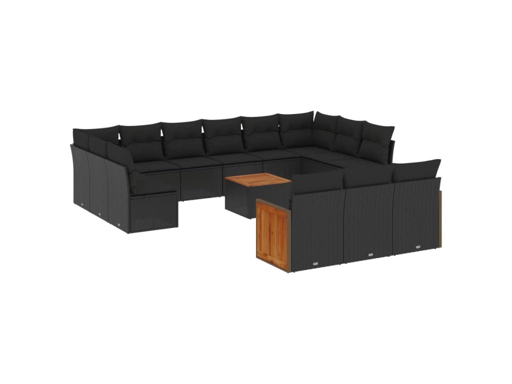14dílná zahradní sedací souprava s poduškami černá polyratan 3228141