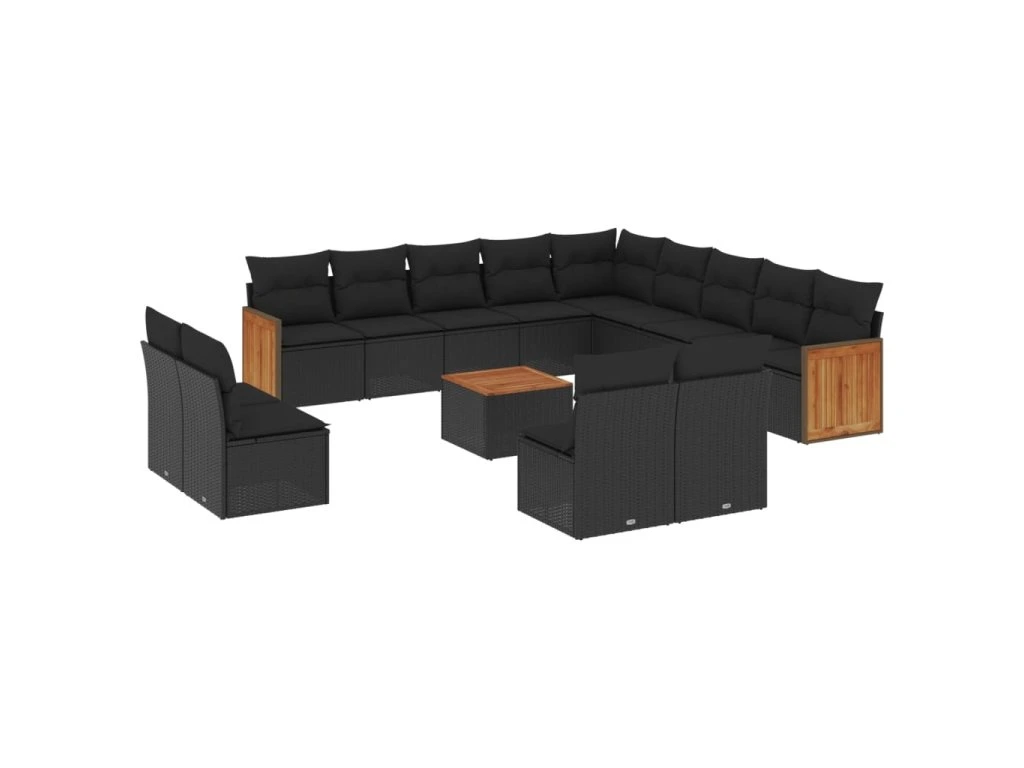 14dílná zahradní sedací souprava s poduškami černá polyratan 3228169