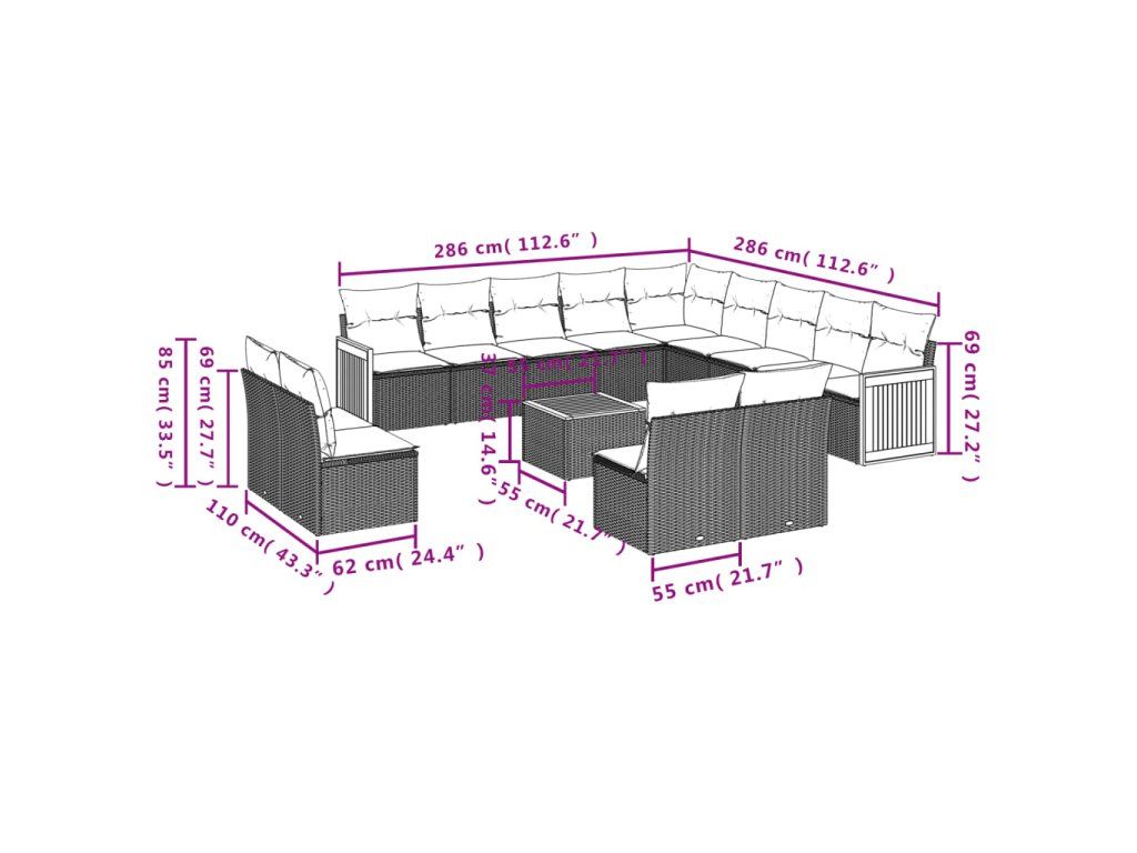14dílná zahradní sedací souprava s poduškami černá polyratan 3228170