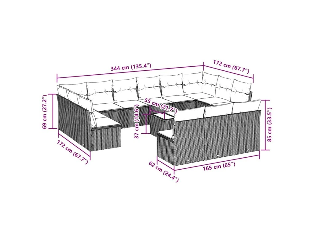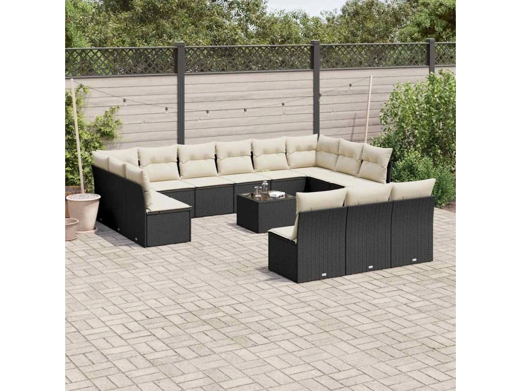 14dílná zahradní sedací souprava s poduškami černá polyratan 3250235