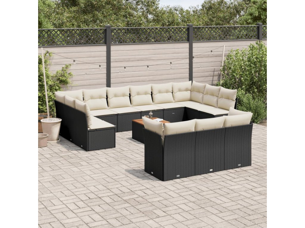 14dílná zahradní sedací souprava s poduškami černá polyratan 3256252