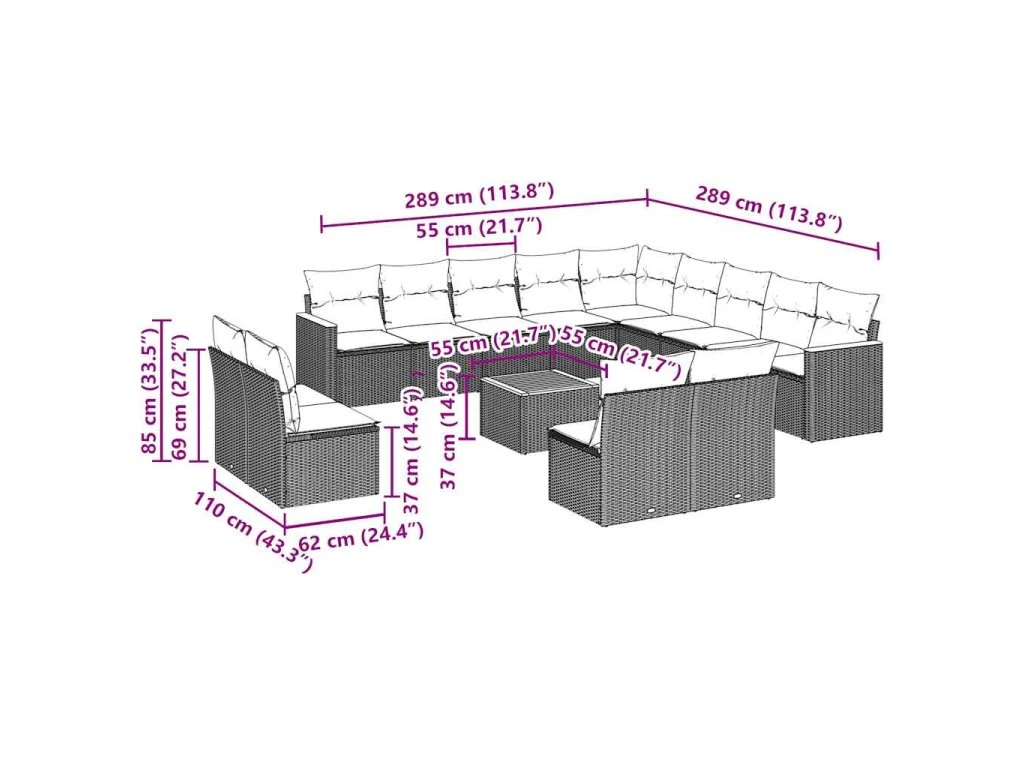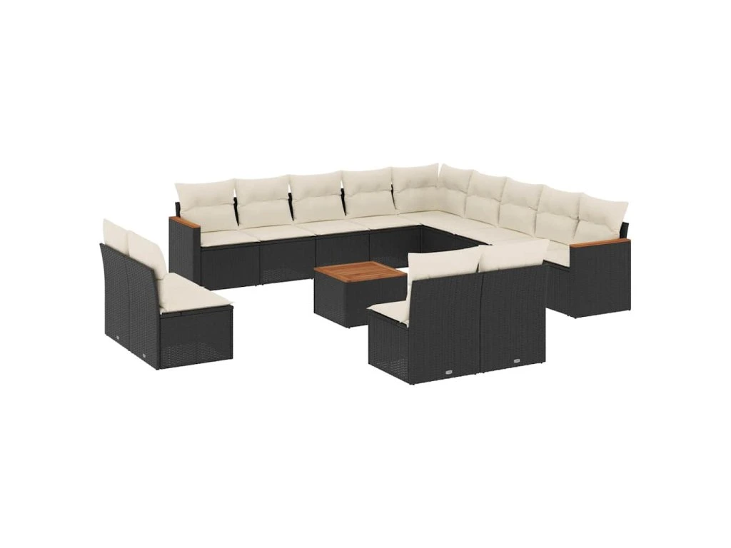 14dílná zahradní sedací souprava s poduškami černá polyratan 3258892