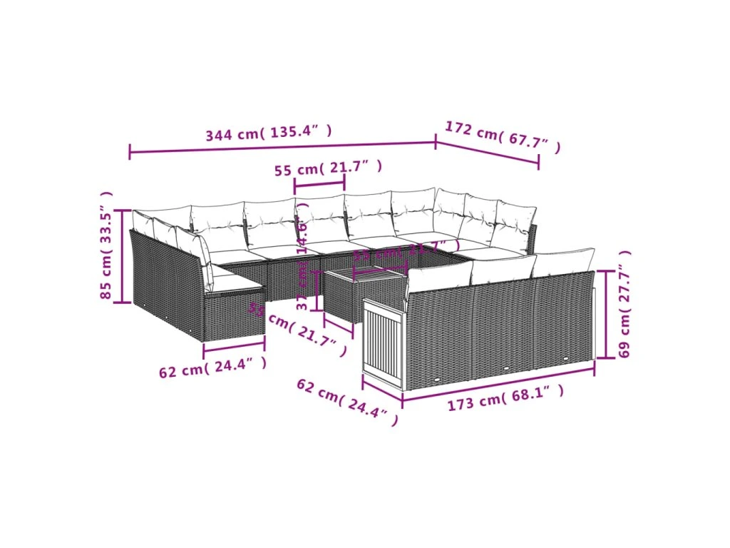 14dílná zahradní sedací souprava s poduškami černá polyratan 3260544