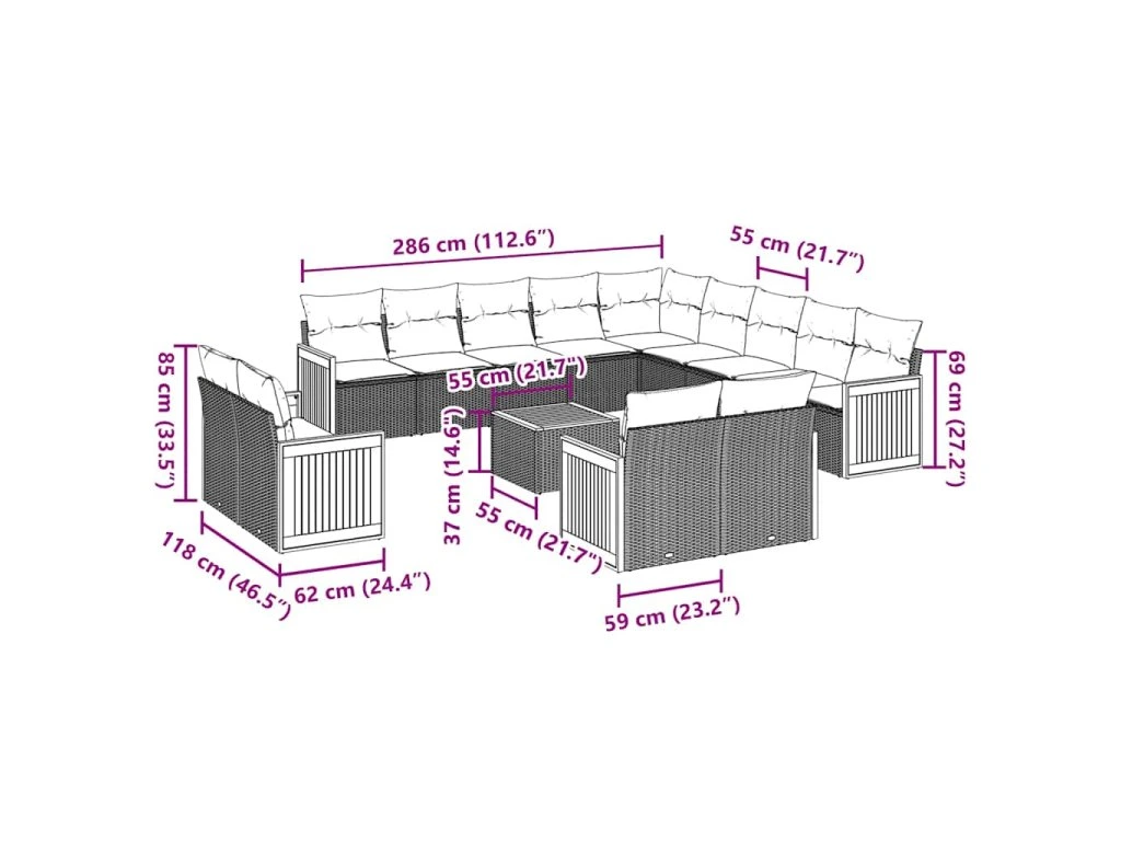Tato zahradní sedací souprava je dokonalým doplňkem vaší zahrady, terasy nebo dvorku a poskytne vám pohodlné a příjemné místo, kde si můžete povídat s rodinou a přáteli nebo jen tak odpočívat a užívat si pobyt venku.