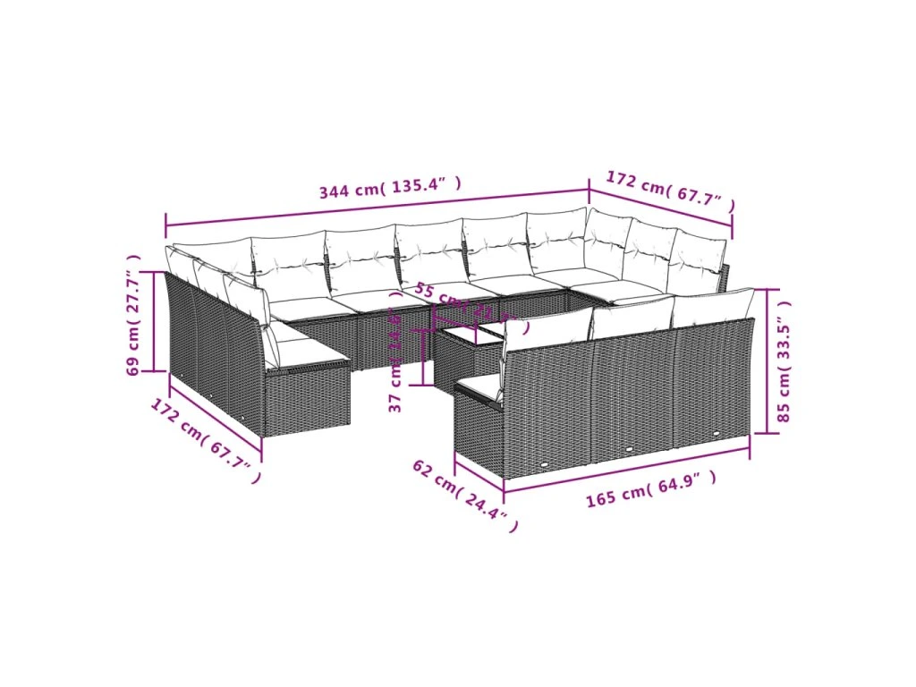 14dílná zahradní sedací souprava s poduškami hnědá polyratan 3250242