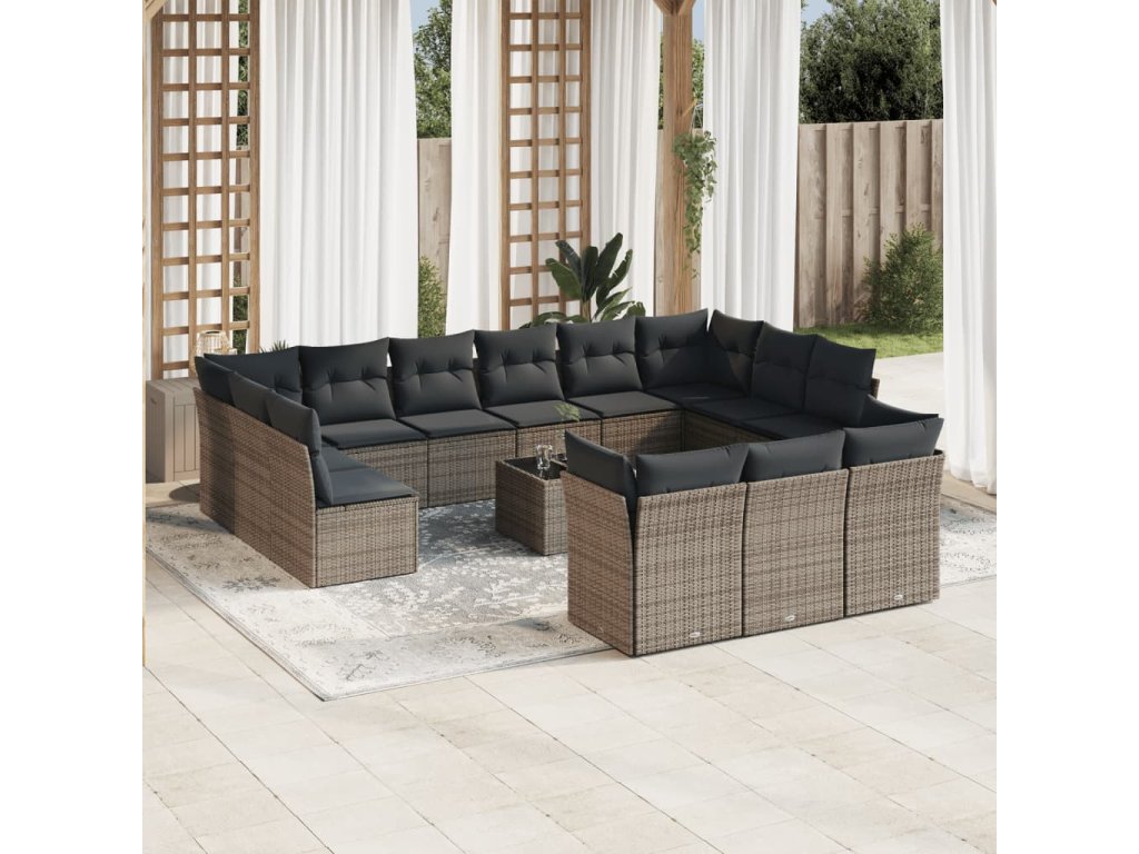 14dílná zahradní sedací souprava s poduškami šedá polyratan 3218460
