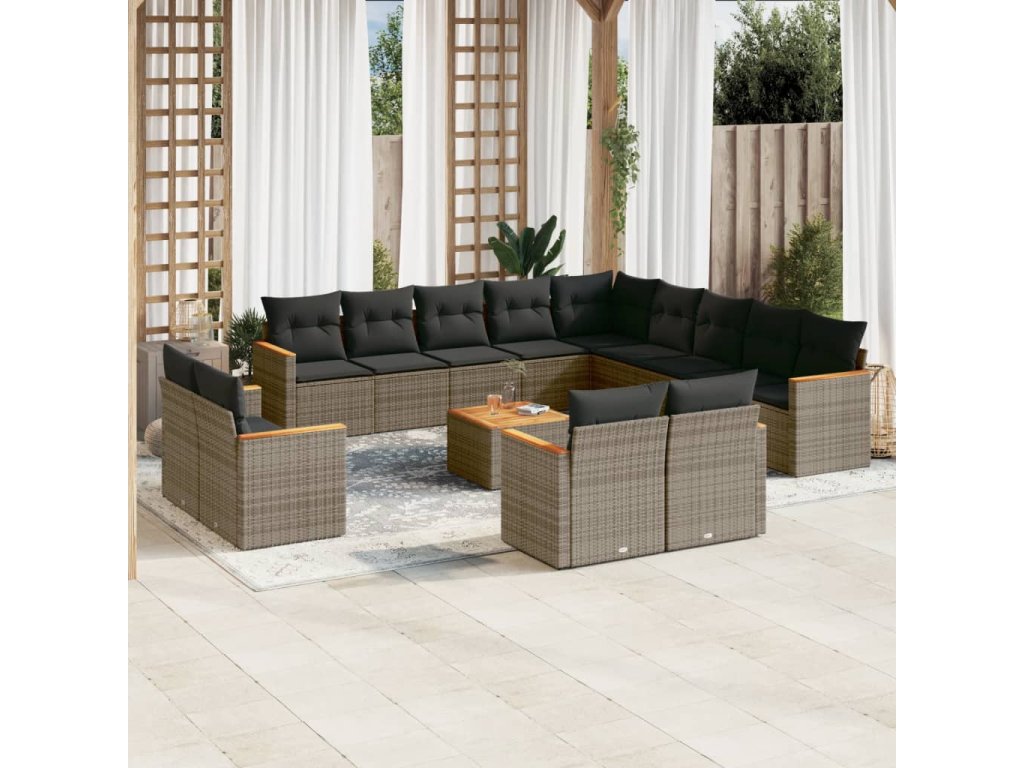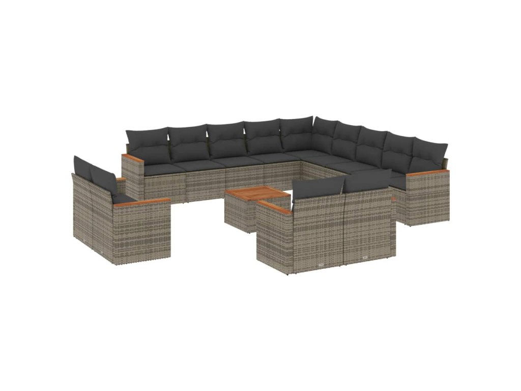 14dílná zahradní sedací souprava s poduškami šedá polyratan 3226536