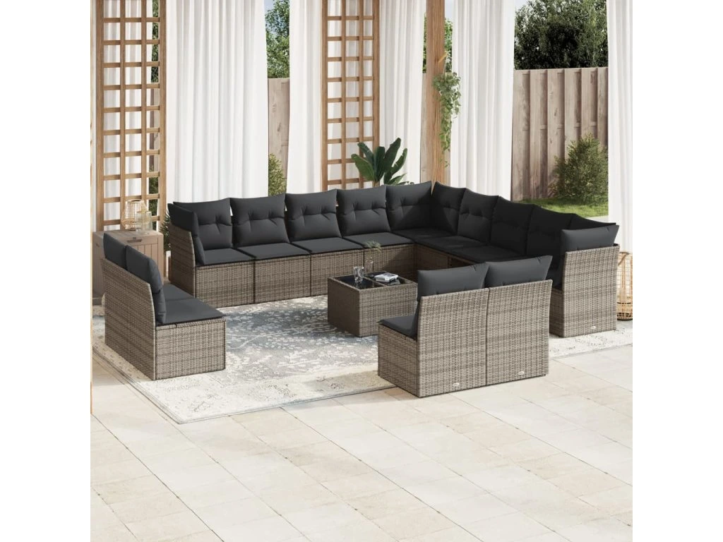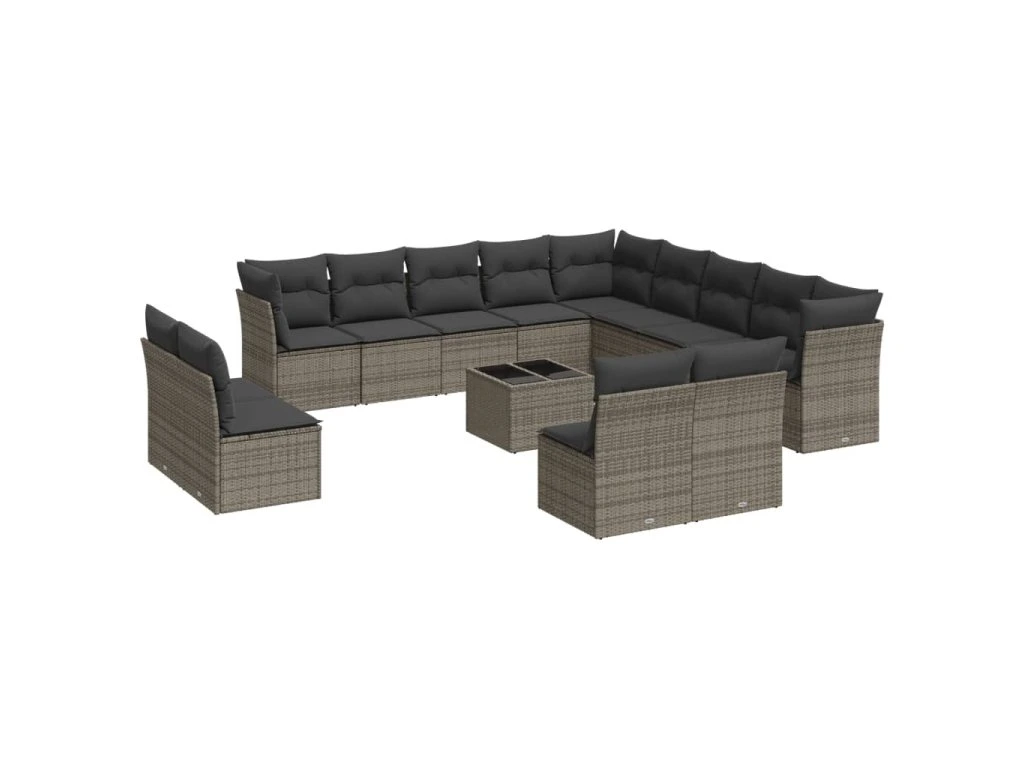 14dílná zahradní sedací souprava s poduškami šedá polyratan 3250339