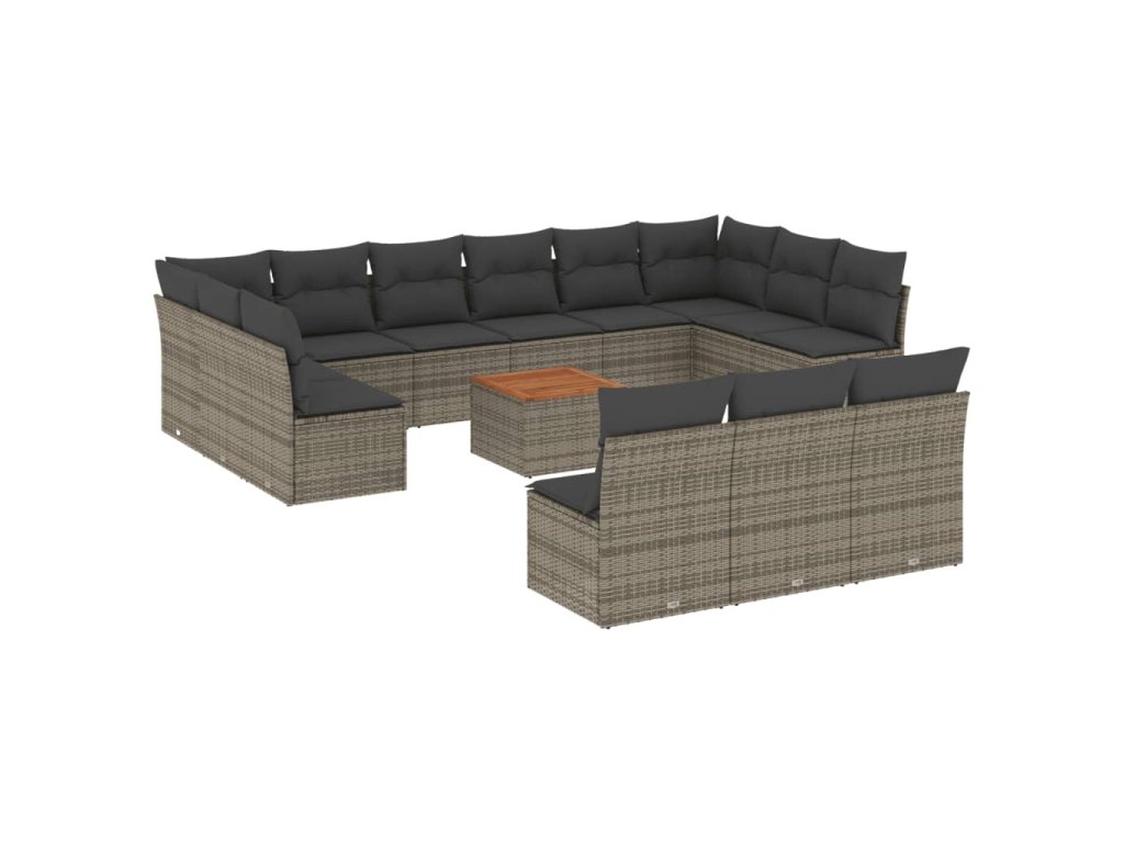 14dílná zahradní sedací souprava s poduškami šedá polyratan 3256235