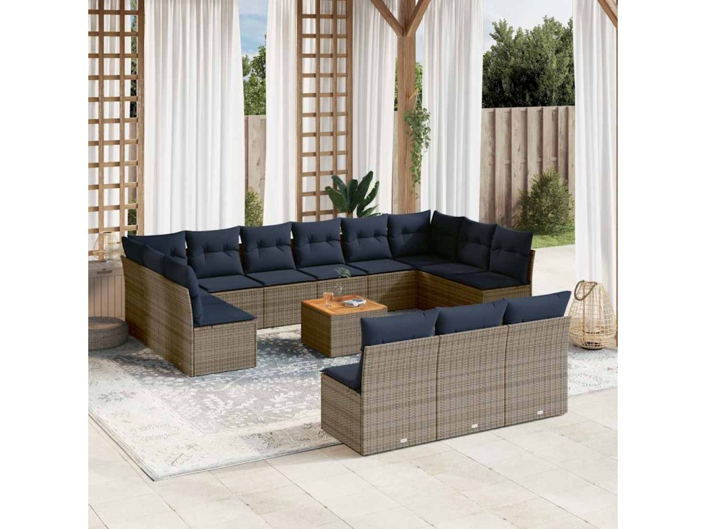 14dílná zahradní sedací souprava s poduškami šedá polyratan 3256236
