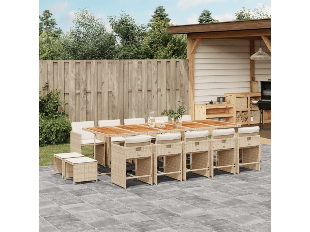 15dílný zahradní jídelní set s poduškami béžový polyratan 3211180