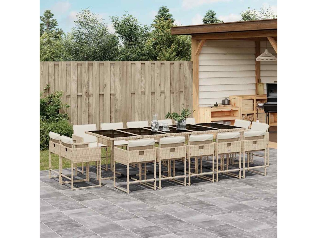 15dílný zahradní jídelní set s poduškami béžový polyratan 3278181