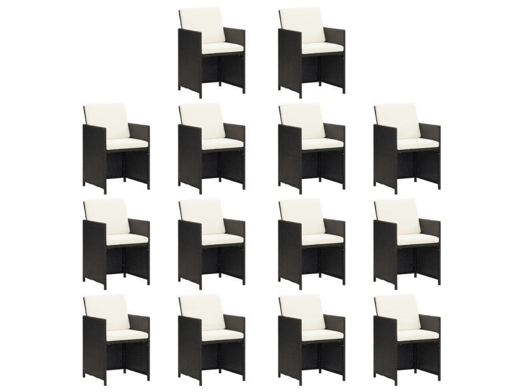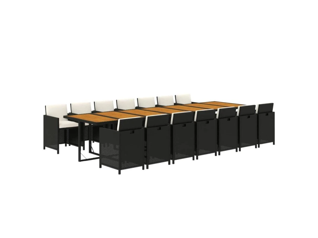 15dílný zahradní jídelní set s poduškami černý polyratan 3095653