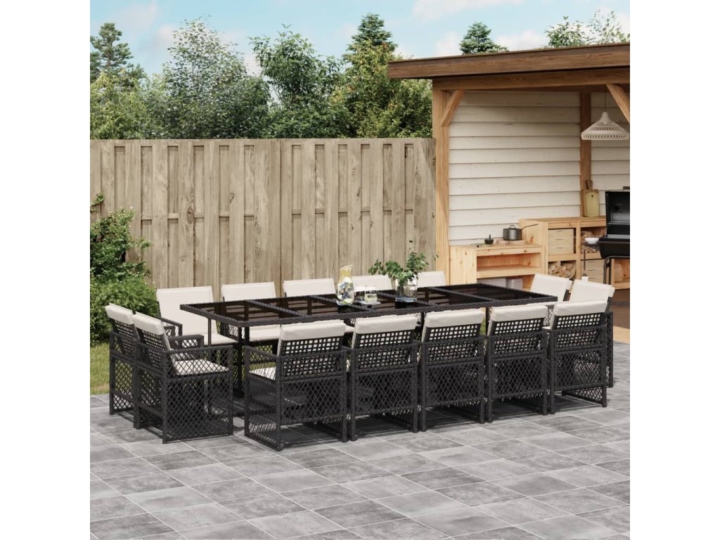 15dílný zahradní jídelní set s poduškami černý polyratan 3210870