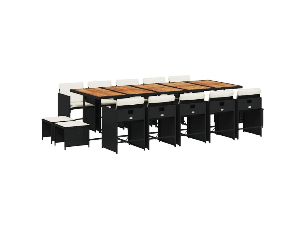 15dílný zahradní jídelní set s poduškami černý polyratan 3211179