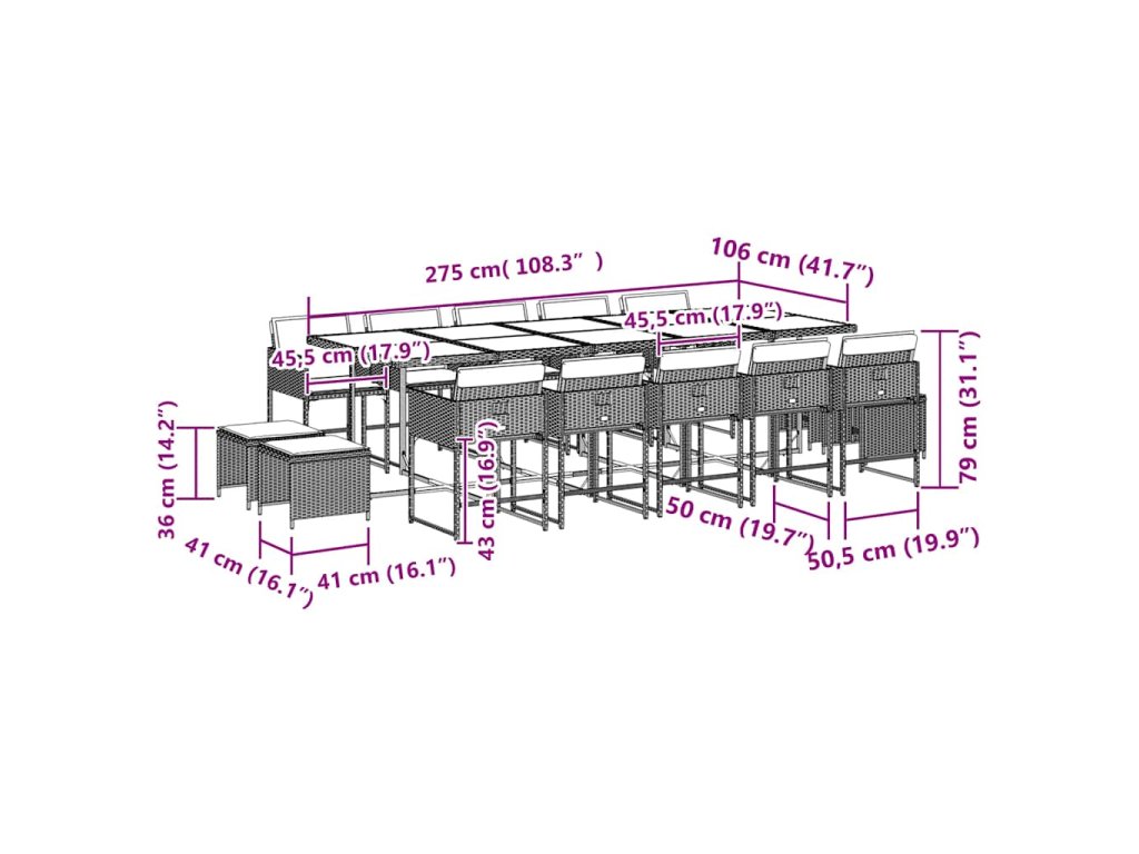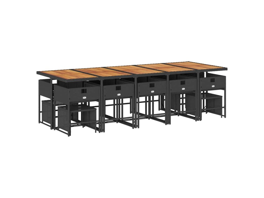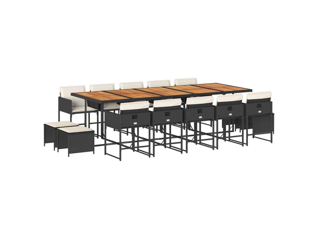 15dílný zahradní jídelní set s poduškami černý polyratan 3211359