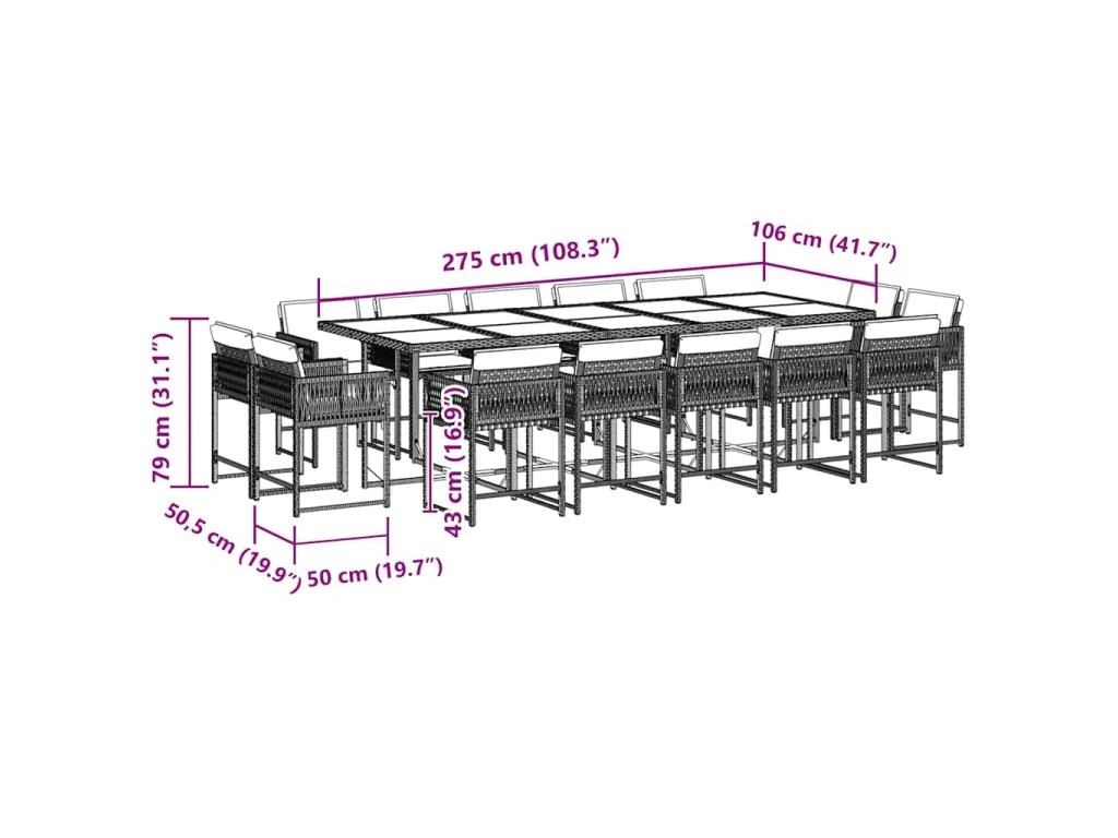 15dílný zahradní jídelní set s poduškami černý polyratan 3211599