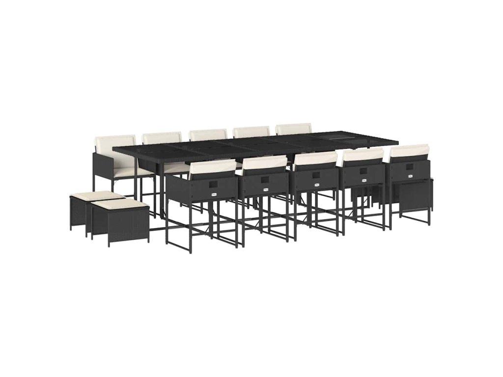 15dílný zahradní jídelní set s poduškami černý polyratan 3278117