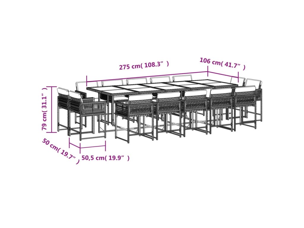 15dílný zahradní jídelní set s poduškami hnědý polyratan 3211593