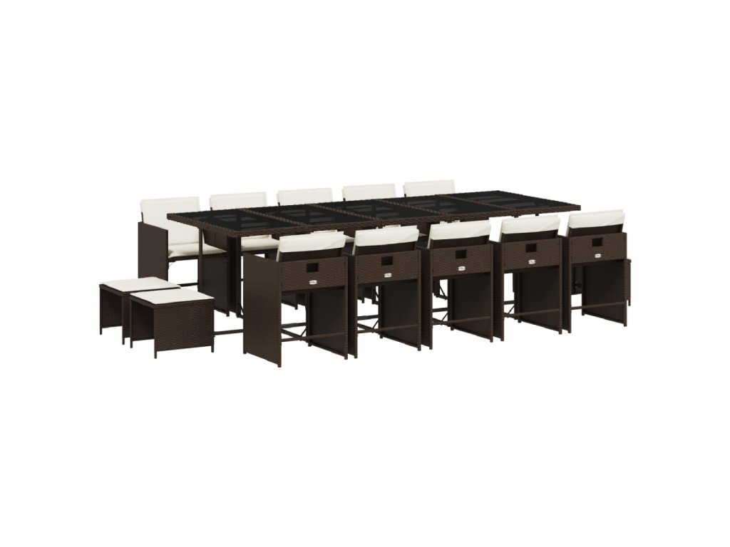 15dílný zahradní jídelní set s poduškami hnědý polyratan 3277940