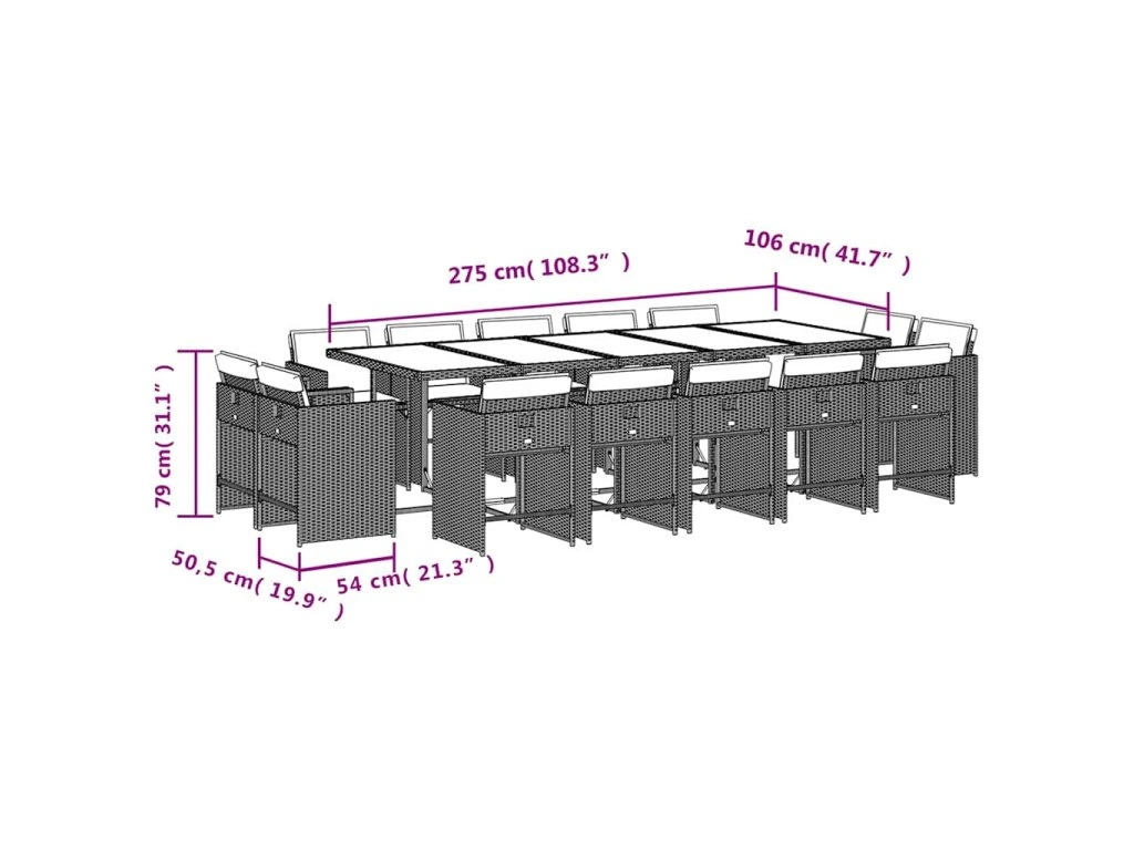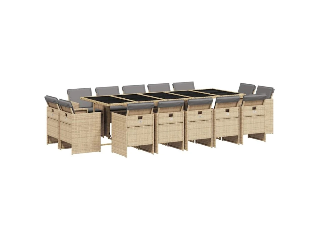 15dílný zahradní jídelní set s poduškami mix béžové polyratan 3210696