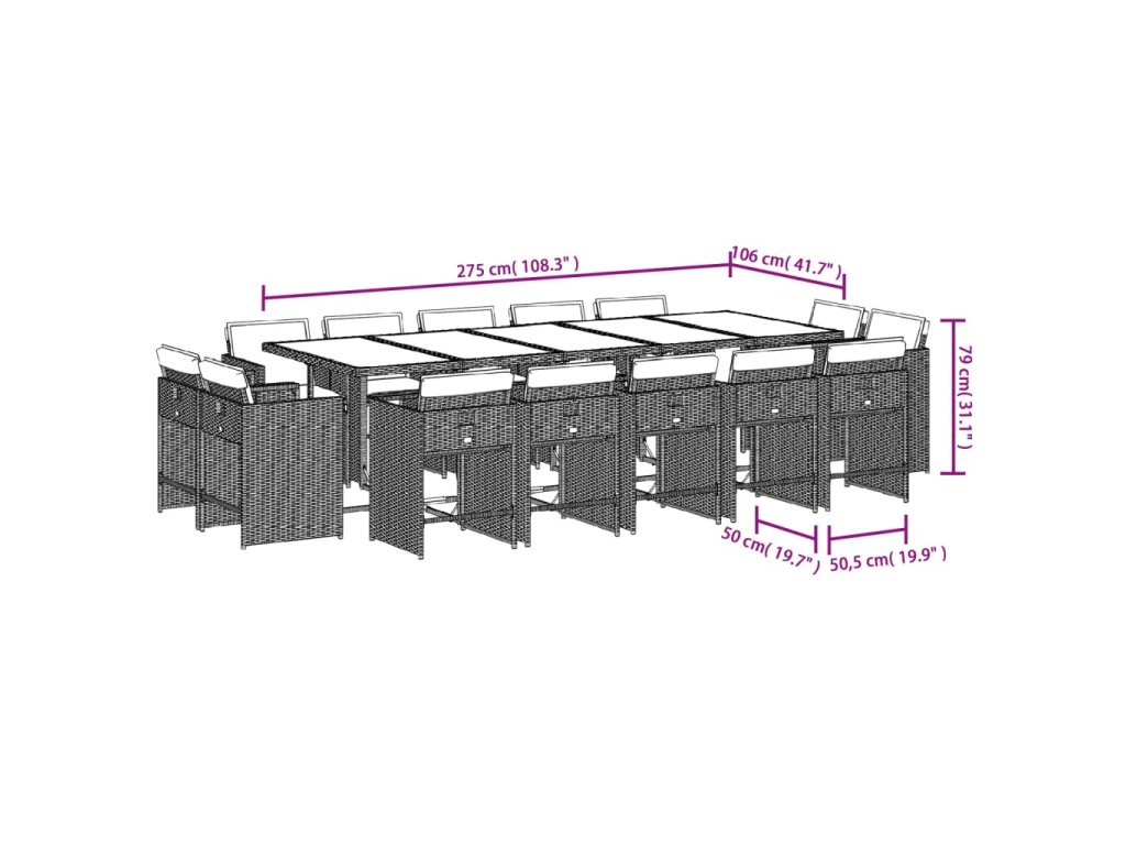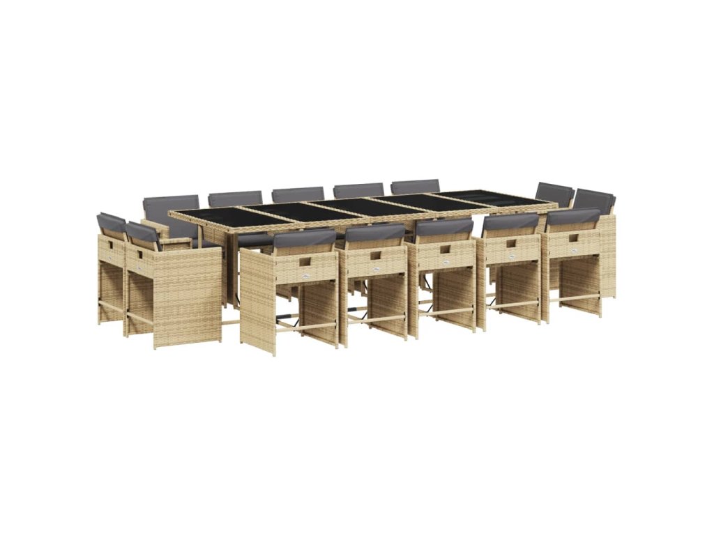15dílný zahradní jídelní set s poduškami mix béžové polyratan 3278003