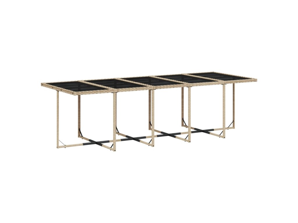 - Stabilní a snadno čistitelná stolní deska: Tento zahradní stůl má desku z tvrzeného skla, která je stabilní, odolná a snadno se čistí vlhkým hadříkem.