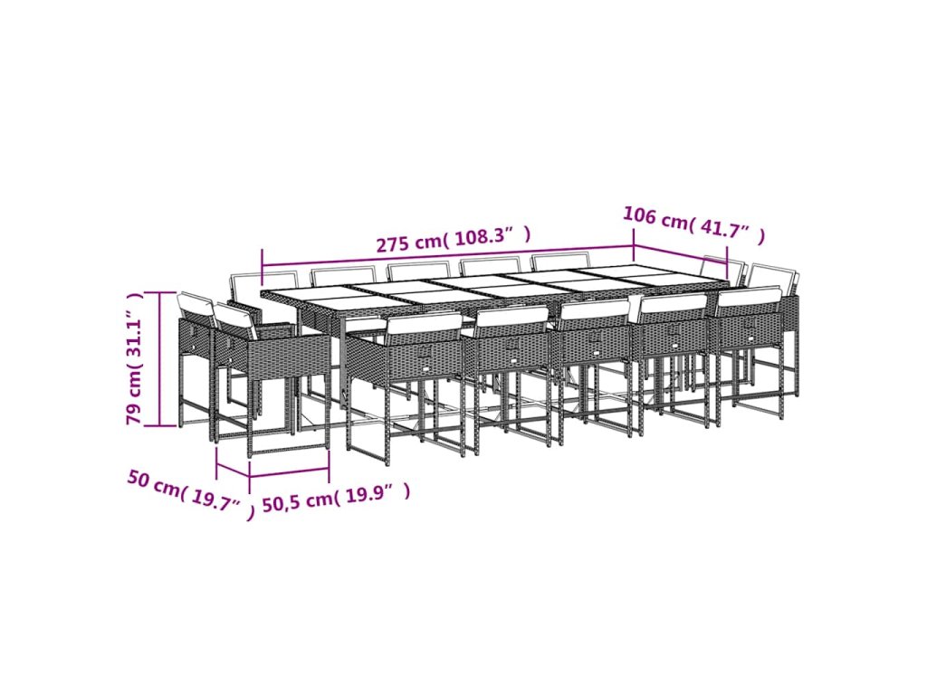 15dílný zahradní jídelní set s poduškami mix béžové polyratan 3278183