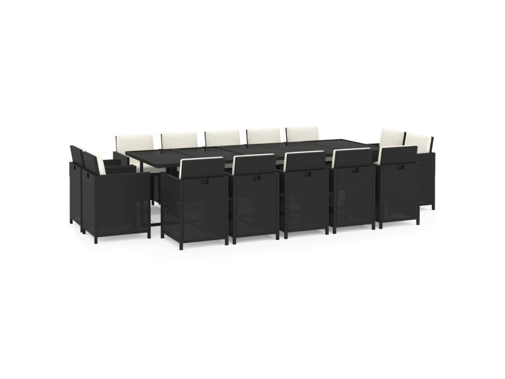 15dílný zahradní jídelní set s poduškami polyratan černý 3095586