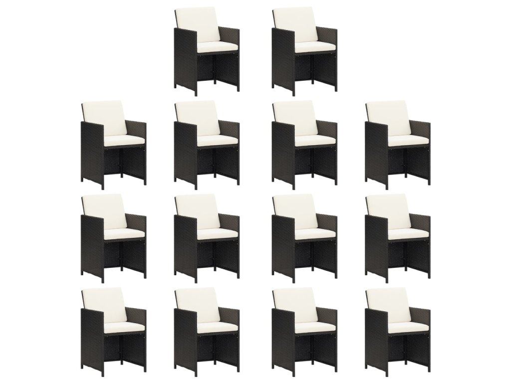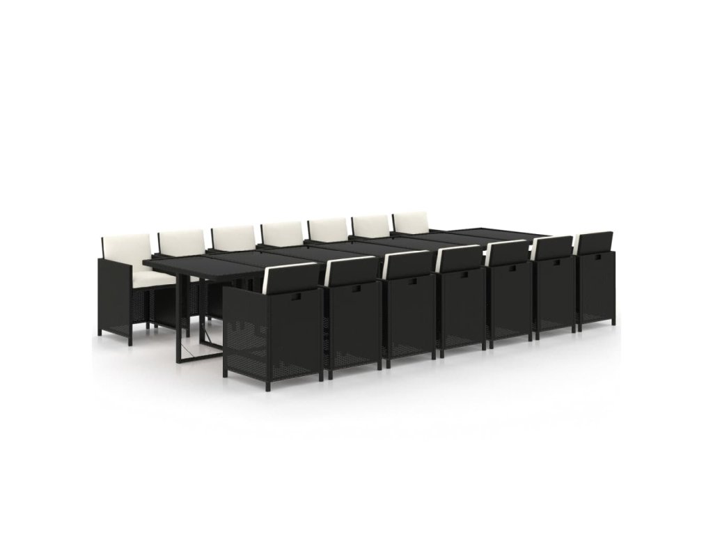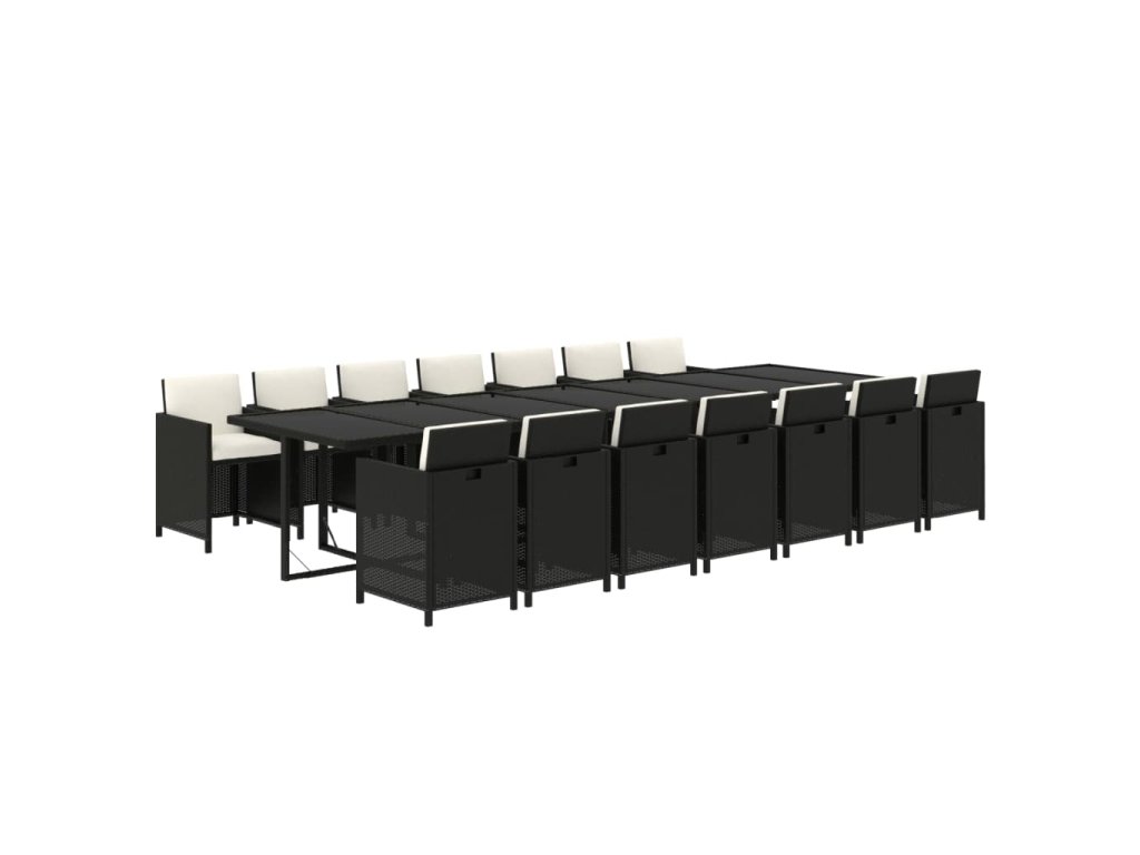 15dílný zahradní jídelní set s poduškami polyratan černý 3095638