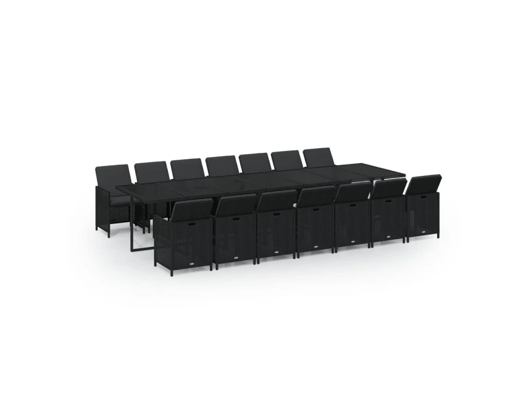 15dílný zahradní jídelní set s poduškami polyratan černý 3095639