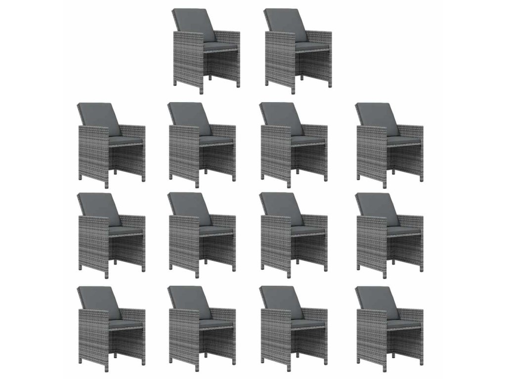 15dílný zahradní jídelní set s poduškami polyratan šedý 3095591
