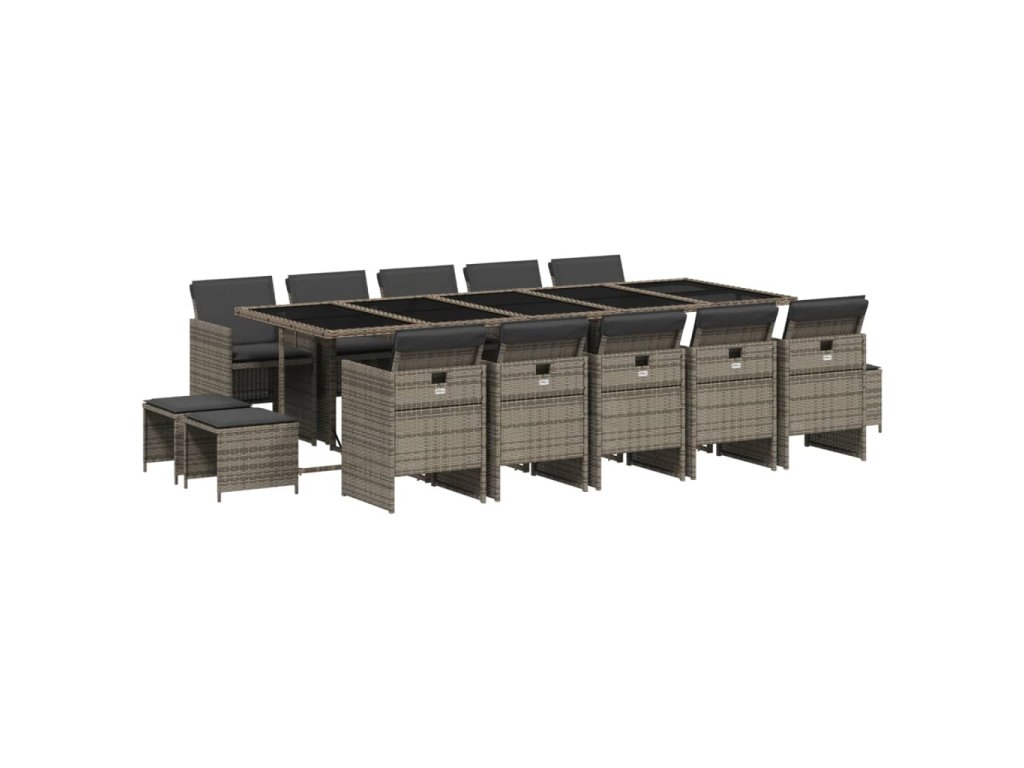 15dílný zahradní jídelní set s poduškami šedý polyratan 3210632