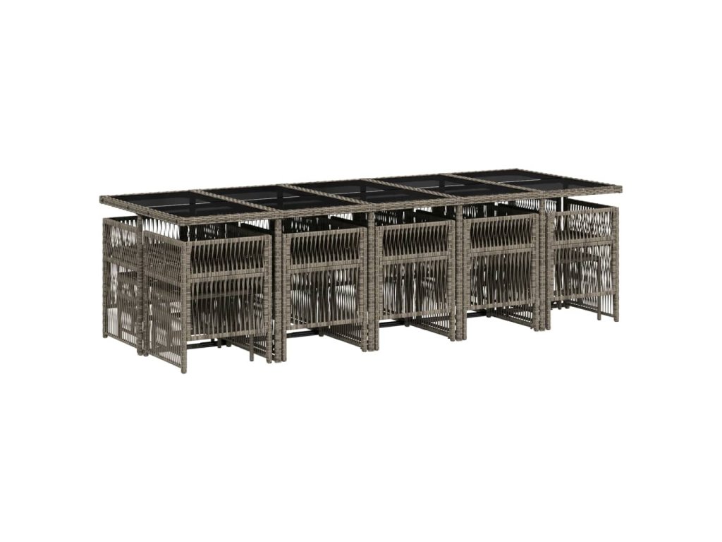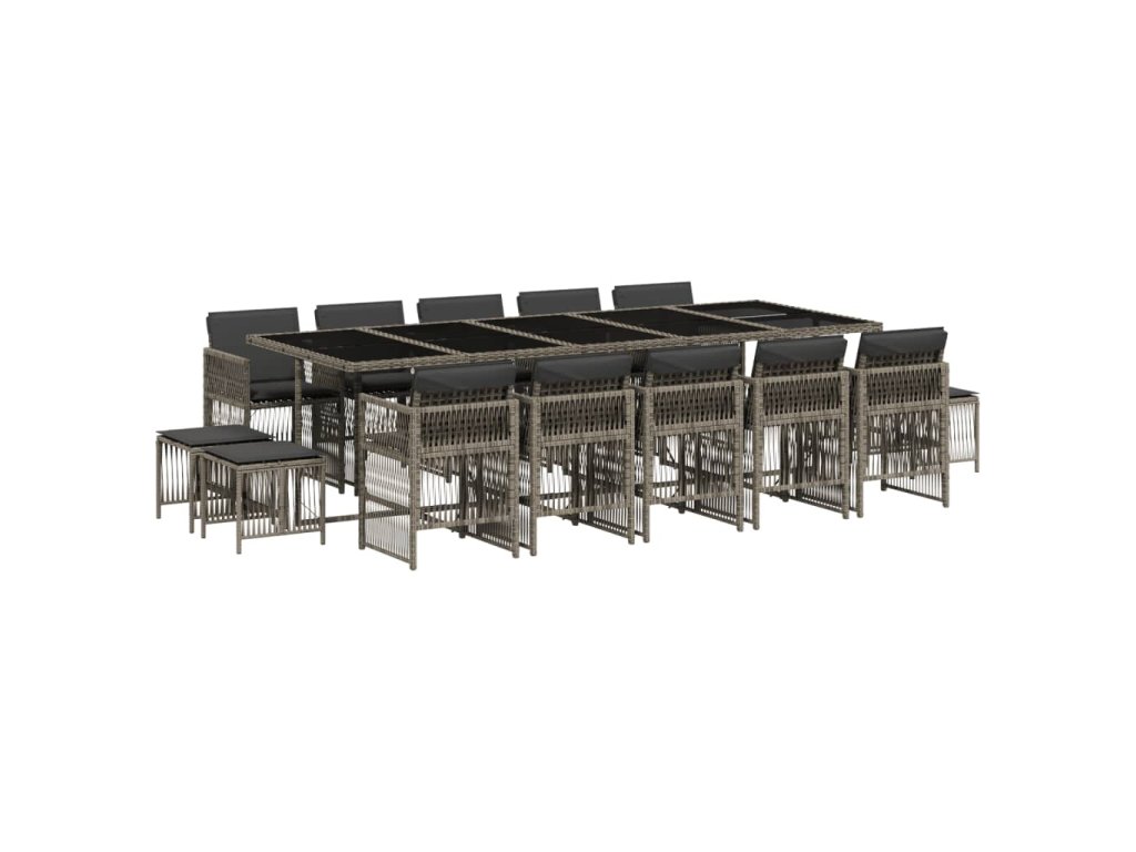 15dílný zahradní jídelní set s poduškami šedý polyratan 3210992