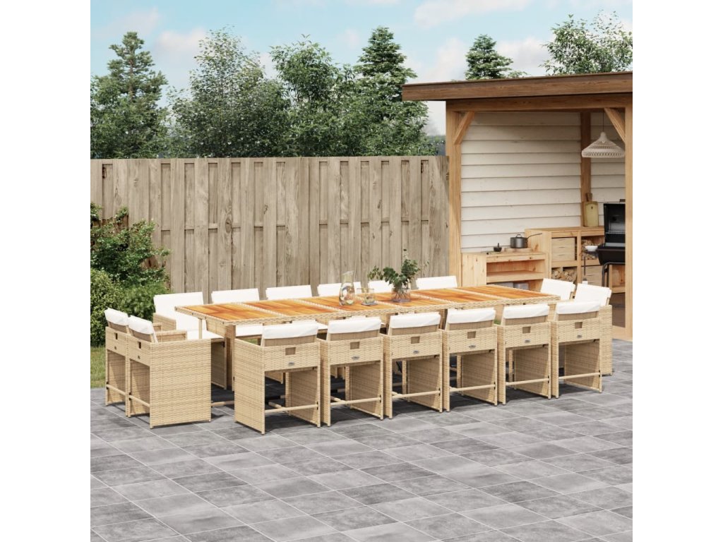 17dílný zahradní jídelní set s poduškami béžový polyratan 3211252