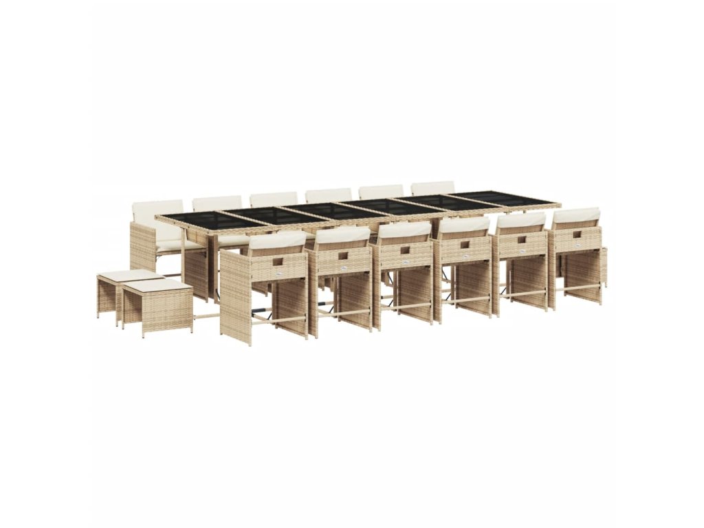 17dílný zahradní jídelní set s poduškami béžový polyratan 3277953