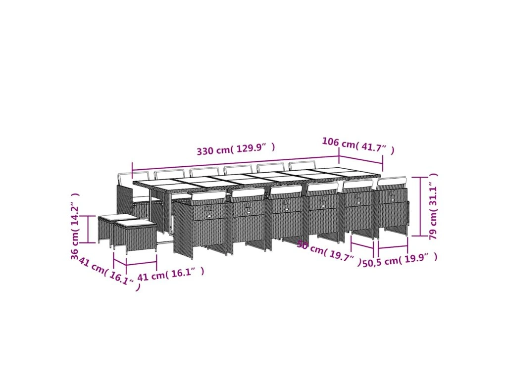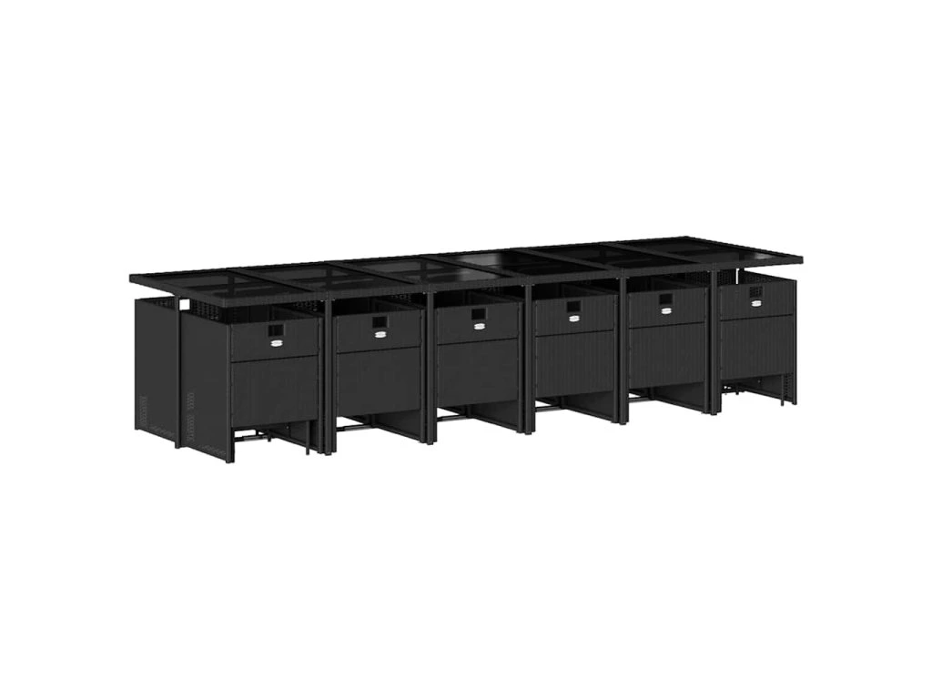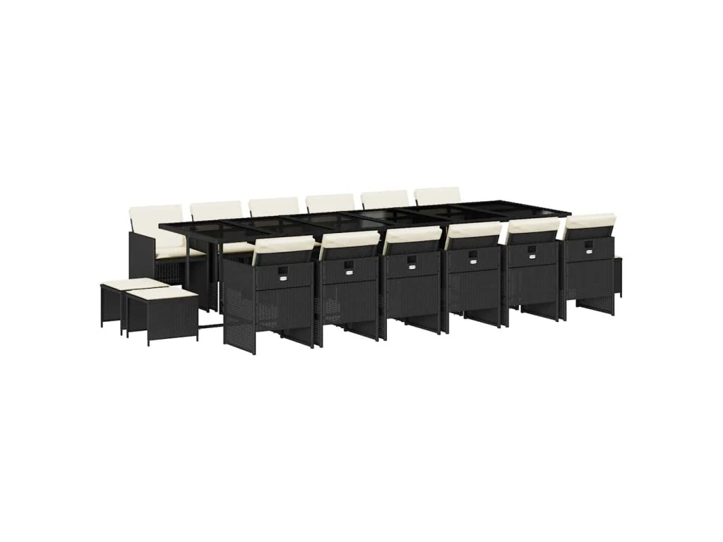 17dílný zahradní jídelní set s poduškami černý polyratan 3210642