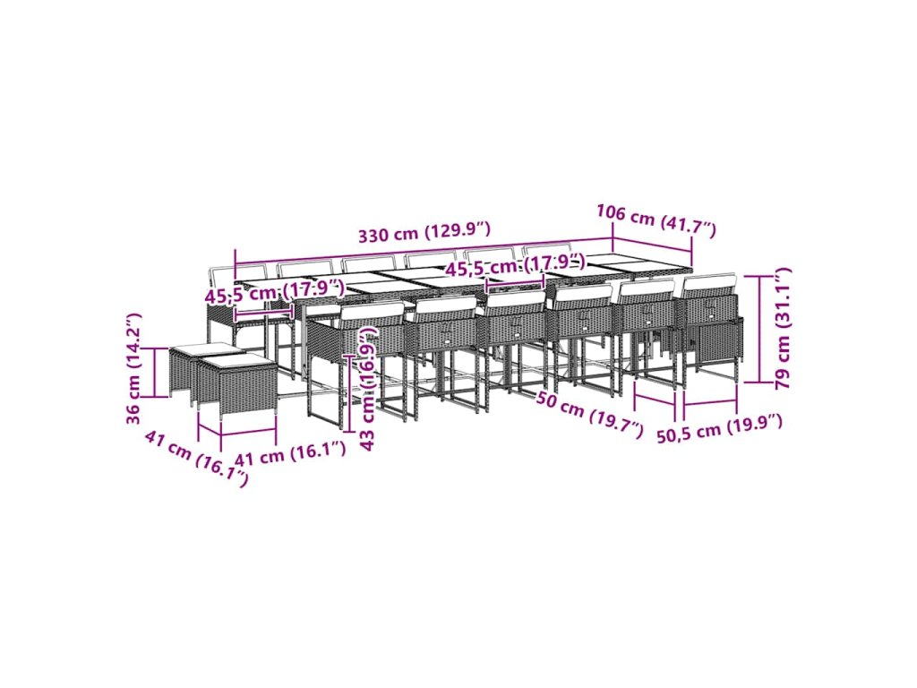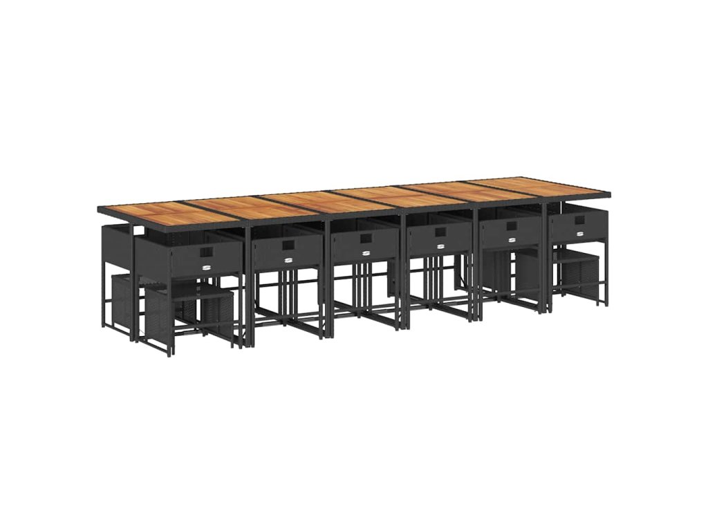 17dílný zahradní jídelní set s poduškami černý polyratan 3211371