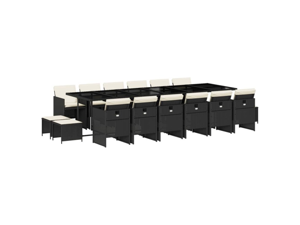 17dílný zahradní jídelní set s poduškami černý polyratan 3277769