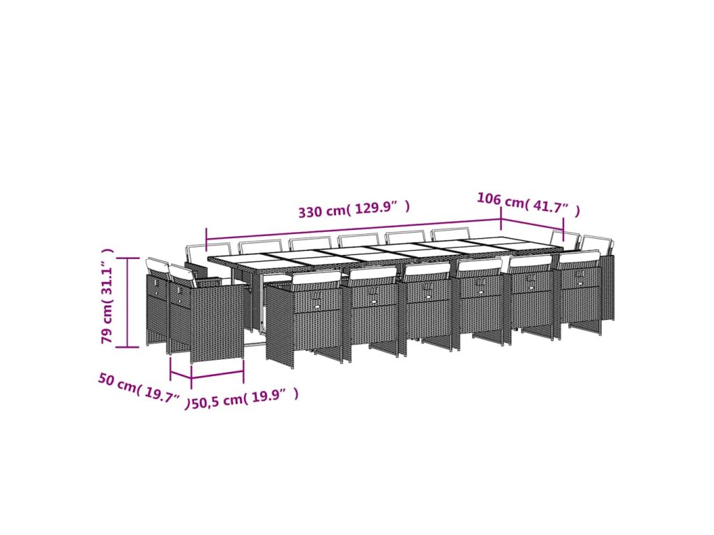17dílný zahradní jídelní set s poduškami černý polyratan 3277830
