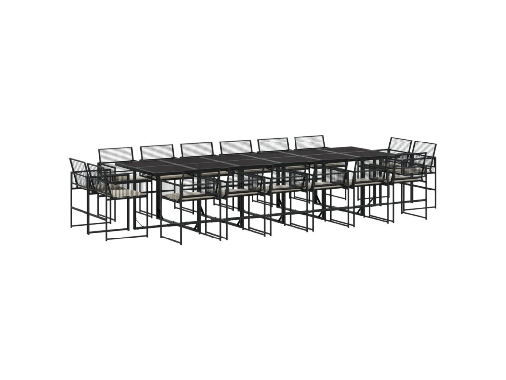 17dílný zahradní jídelní set s poduškami černý polyratan 3295017