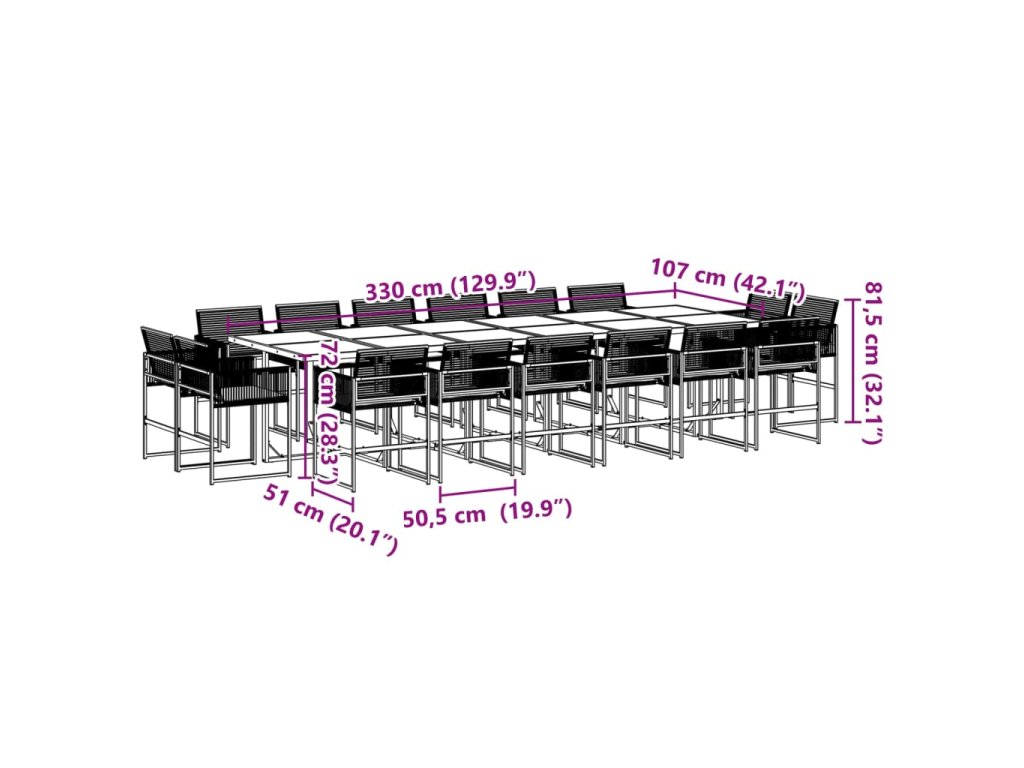 - Robustní a stabilní rám: Ocelový rám s práškovým nástřikem zajišťuje, že zahradní nábytek je pevný a stabilní pro každodenní venkovní použití.