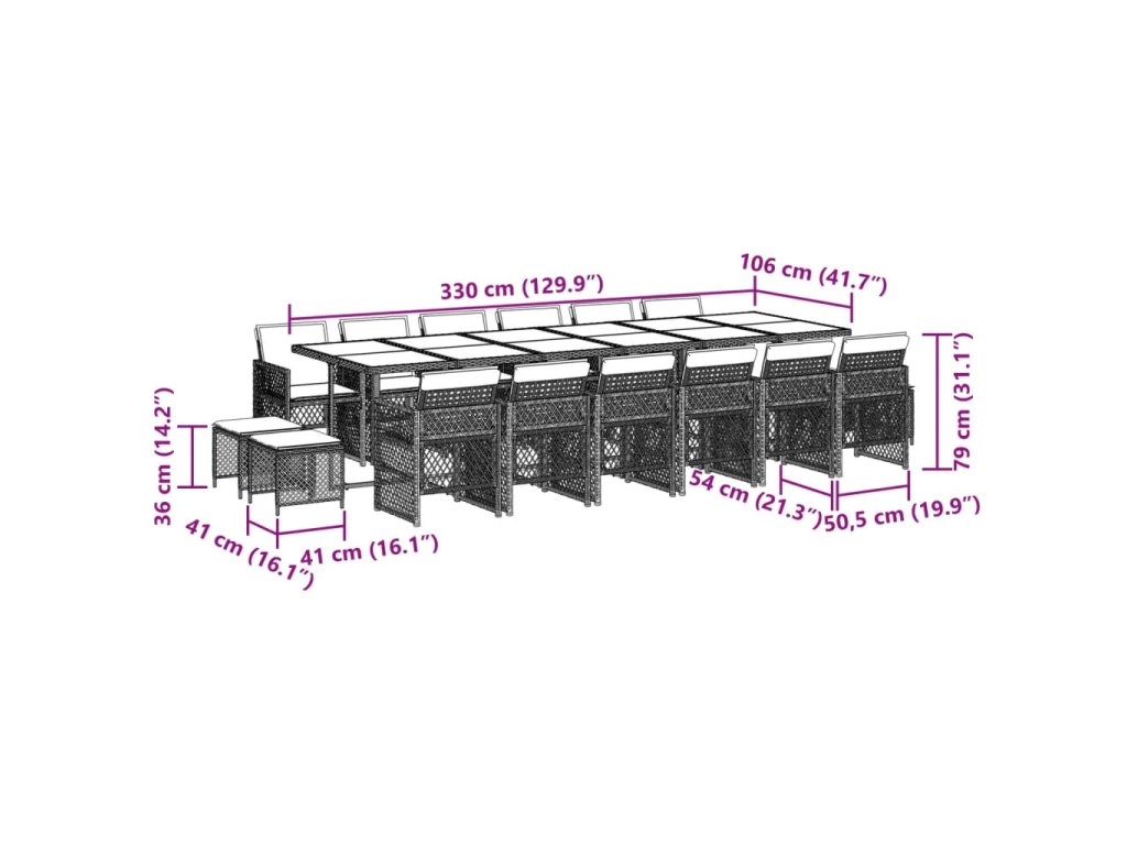 17dílný zahradní jídelní set s poduškami hnědý polyratan 3210825