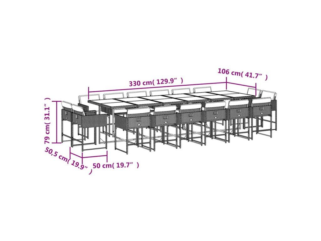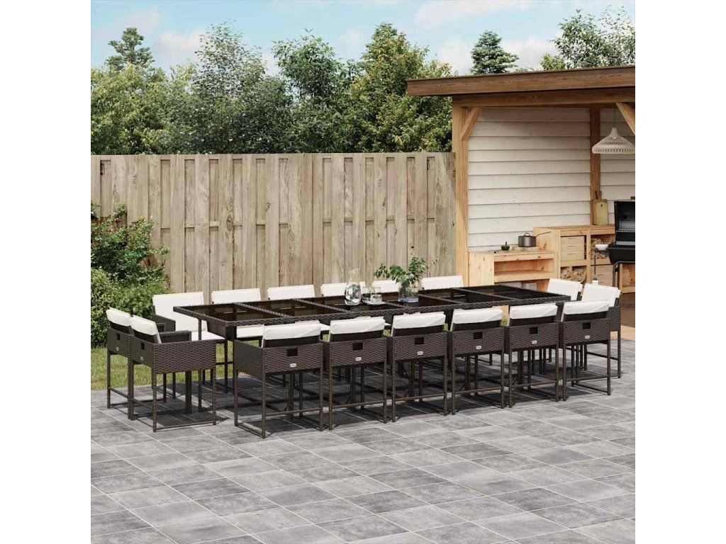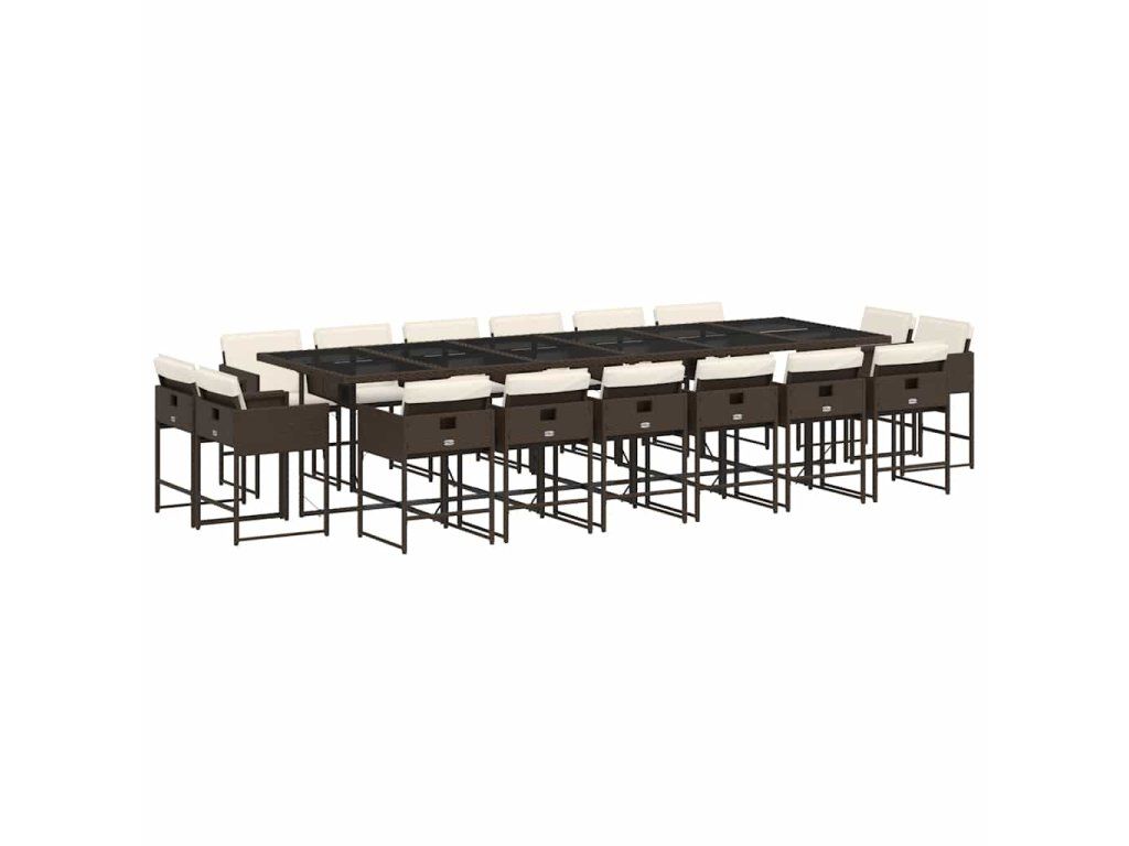 17dílný zahradní jídelní set s poduškami hnědý polyratan 3278192