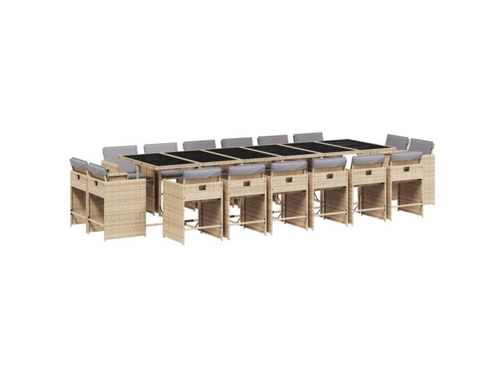 17dílný zahradní jídelní set s poduškami mix béžové polyratan 3278015