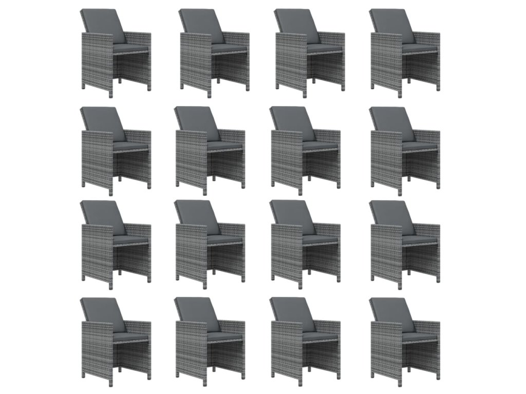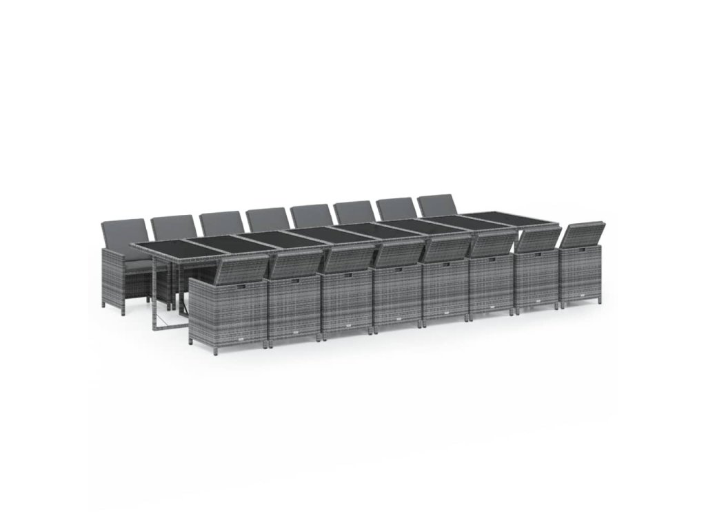 17dílný zahradní jídelní set s poduškami šedý polyratan 3095671