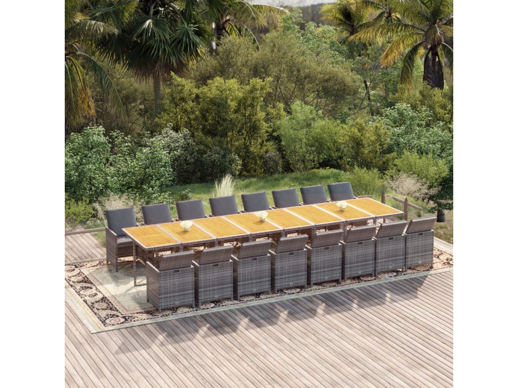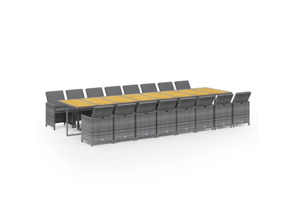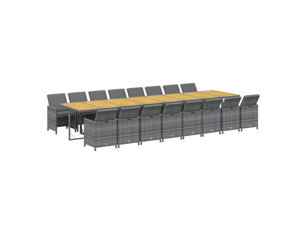 17dílný zahradní jídelní set s poduškami šedý polyratan 3095686